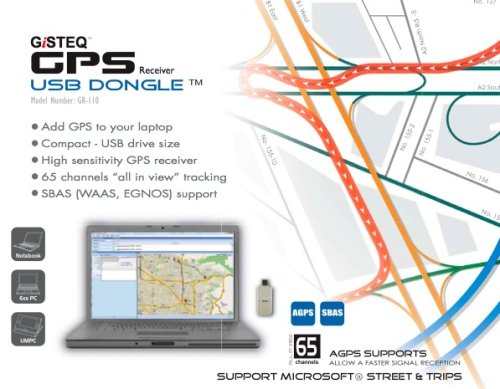 GiSTEQs USB GPS dongle is GPS receiver with a size of a USB drive. Its compact size makes it ultraportable for its users. As the rise of the Netbook, the demand of GPS-enabled computing is continuing to increase. With GiSTEQs USB GPS, user can easily add GPS function to their Netbooks, Eee PCs, UMPCs or Laptops for different applications. Its compatible with most desktop mapping software available in the market. Baud rate is adjustable for different purposes. It is also optimized for superb performance. The 65 parallel channels and the -160dBm sensitivity provide short start-up time and fast signal acquisition. Having fast time-to-first-fix and the high sensitivity chipset, the USB dongle offers great performance even in urban canyons. AGPS and SBAS (WAAS, EGNOS) support are also available in the GPS unit. (*Mapping software not included.)